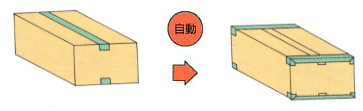 - 角貼り機ワークメイト71はI貼り終了後の段ボールの上下4か所のエッジ部分のテープ貼りを行うカートンシーラーです。